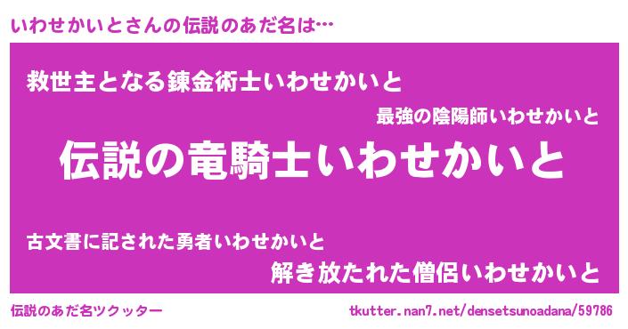 | 胡散臭い通販商品みたいなあだ名 | 『必ず成功するブレスレット…その名も「いわせかいと」』 |