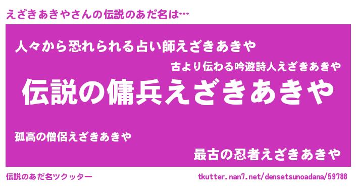 | 恥ずかしいあだ名 | 『プリティーえざきあきや』『えざっちょ』 |