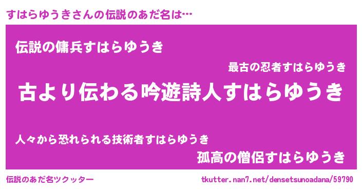 | ヘコむあだ名 | 『すはらゆうき(笑)』『すはにゅー』 |