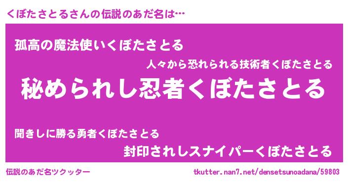 | 意味不明あだ名 | 『くぼたさとるフォーエバー』 |