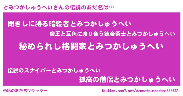 | 意味不明あだ名 | 『住所不定無職とみつかしゅうへい(9歳)』 |