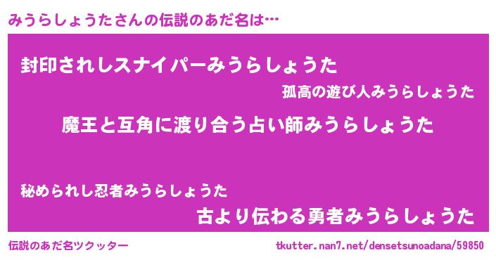 | 意味不明あだ名 | 『住所不定無職みうらしょうた(56歳)』 |