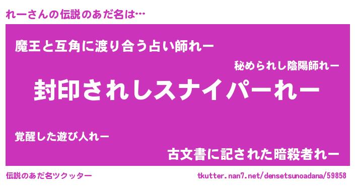 | 男性向けラノベタイトル風あだ名 | 『れーに滅ぼされるだけの簡単なお仕事です』 |