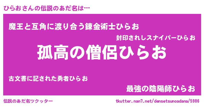 | 女子向けラノベタイトル風あだ名 | 『首の姫と首なしひらお』『ひらお恋絵巻』 |