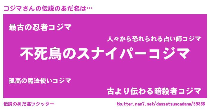 | 男性向けラノベタイトル風あだ名 | 『コジマの憂鬱』『はたらくコジマさま!』 |