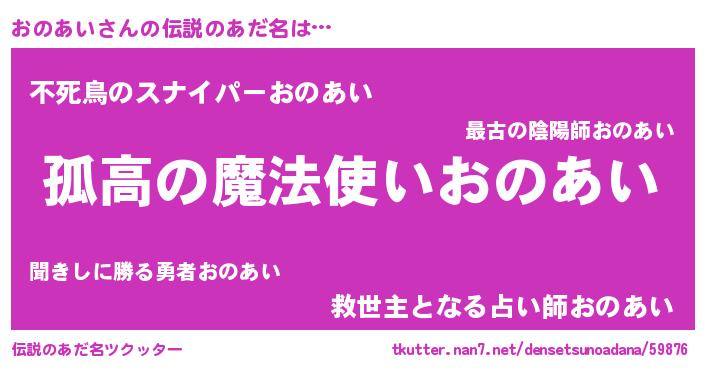 | 男性向けラノベタイトル風あだ名 | 『ダンジョンにおのあいを求めるのは間違っているだろうか』 |