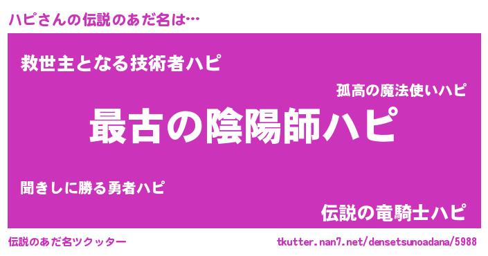 | 意味不明あだ名 | 『ハピフォーエバー』『自称ハピ』 |