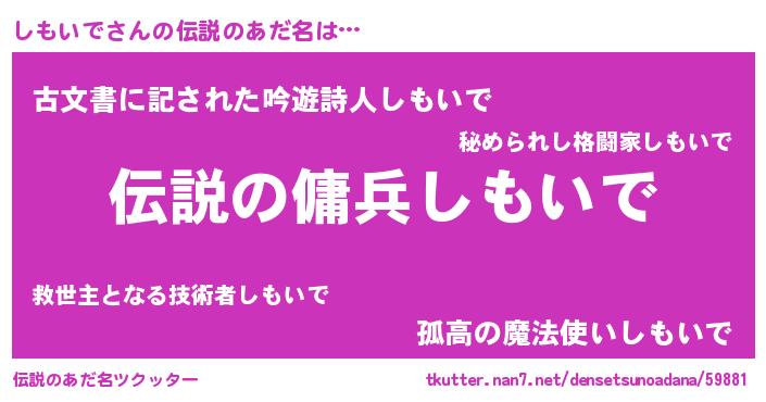 | 意味不明あだ名 | 『自称しもいで』『ペロリンしもいで』 |