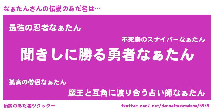 | ヒーロー風カッコイイあだ名 | 『ネオナァタン』『ウルトラなぁたんマン』 |