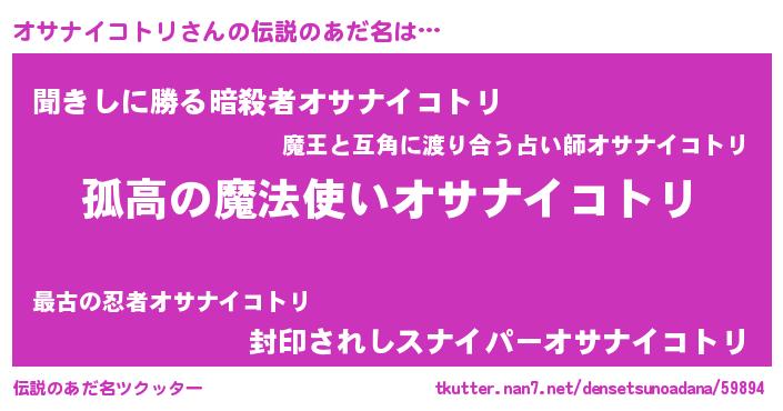 | 胡散臭い通販商品みたいなあだ名 | 『信頼と実績のサプリメント…その名も「オサナイコトリ」』 |