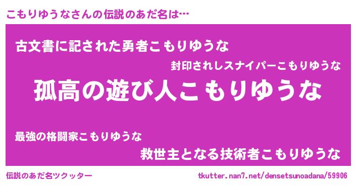 | ヒーロー風カッコイイあだ名 | 『黄金騎士コモ』『最強戦士コモリユウナ』 |