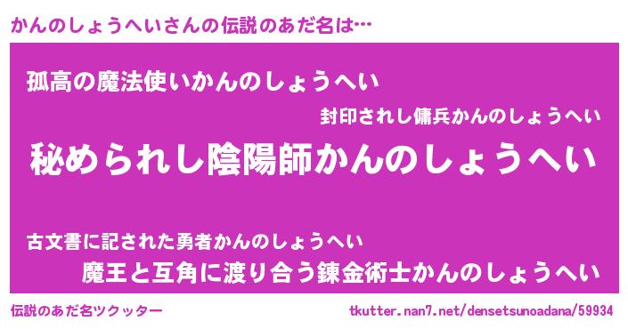| 意味不明あだ名 | 『かんのしょうへいフォーエバー』 |