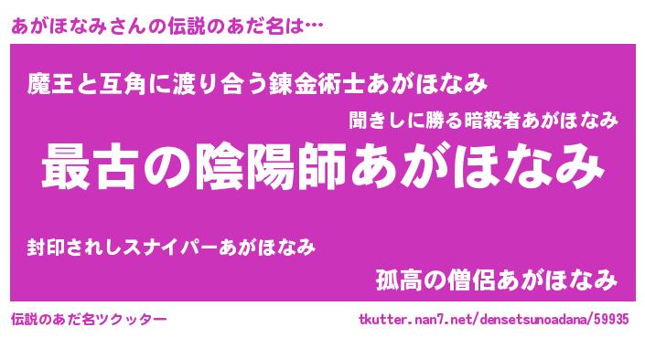 | ヒーロー風カッコイイあだ名 | 『ウルトラあがほなみマン』 |