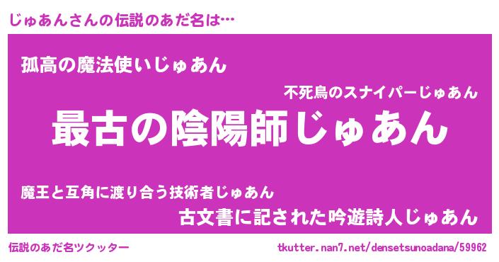 | ヘコむあだ名 | 『なまこ酢』『じゅを』『じゅもー』 |