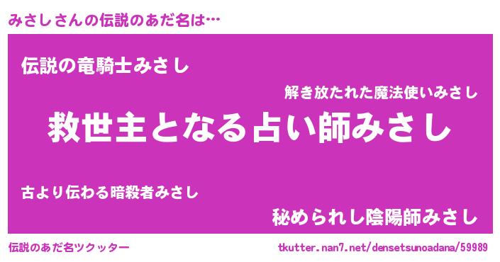 | 男性向けラノベタイトル風あだ名 | 『みさしに滅ぼされるだけの簡単なお仕事です』 |