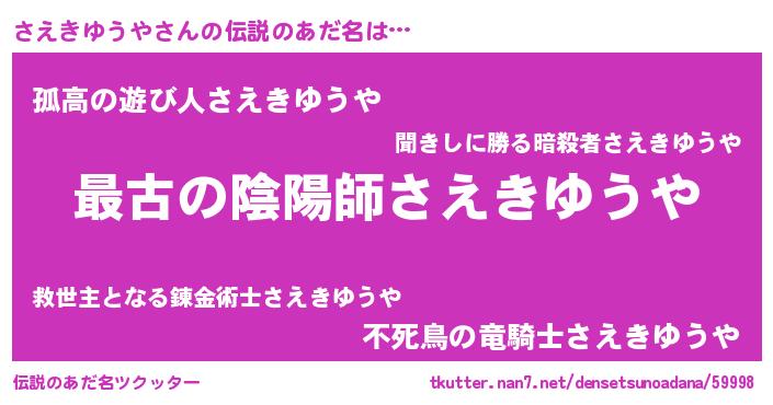 | 意味不明あだ名 | 『自称さえきゆうや』 |