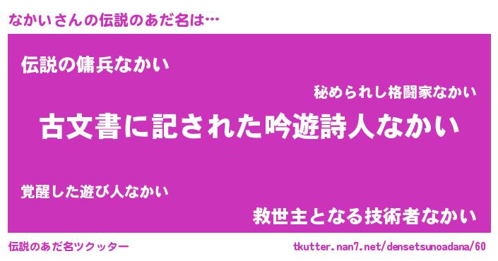 | ファンタジー風あだ名 | 『ナカディッシュ』『ヴァルナカーナ』 |