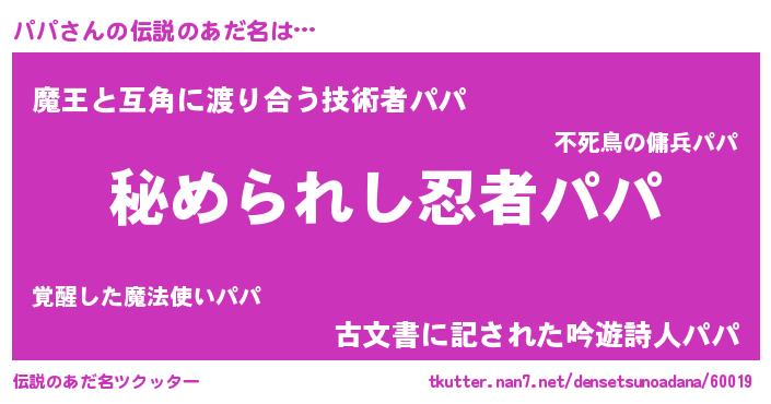 | ヒーロー風カッコイイあだ名 | 『仮面パパダー』『サイバー戦士パパ』 |