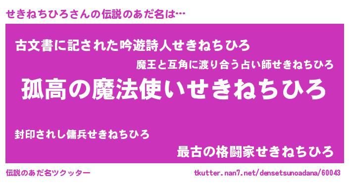 | 意味不明あだ名 | 『とにかく怪しいせきねちひろ』 |