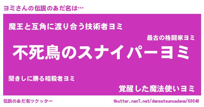 | ヒーロー風カッコイイあだ名 | 『スーパーヨミ』『愛の使者ヨミ』 |