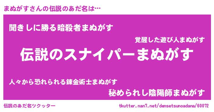 | 胡散臭い通販商品みたいなあだ名 | 『必ず成功する霊験あらたかなお札…その名も「まぬがす」』 |
