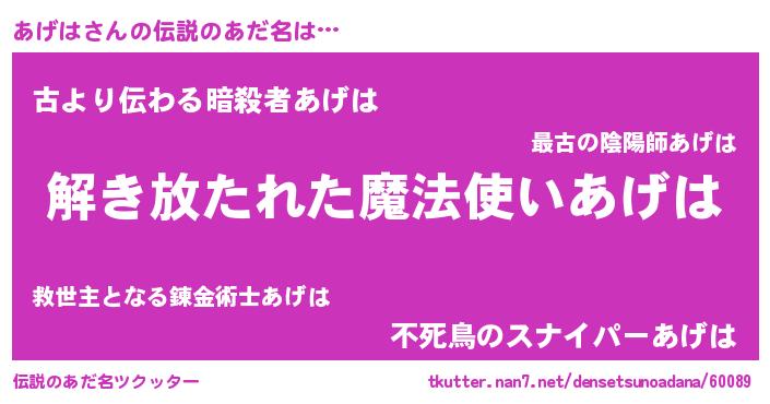| ヒーロー風カッコイイあだ名 | 『幻影騎士アゲ』『仮面アゲダー』 |
