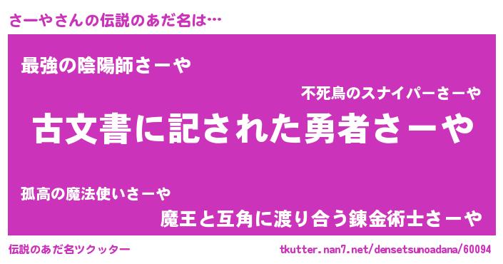 | ヒーロー風カッコイイあだ名 | 『ネオサーヤ』『ウルトラさーやマン』 |