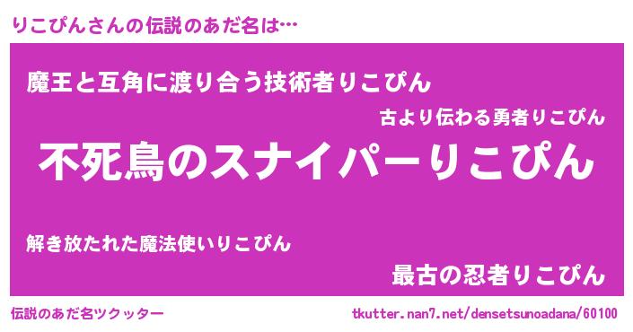 | ヒーロー風カッコイイあだ名 | 『スーパーリコピン』『愛の使者りこぴん』 |