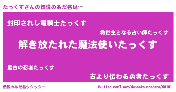 | 胡散臭い通販商品みたいなあだ名 | 『伝統あるサプリメント…その名も「たっくす」』 |