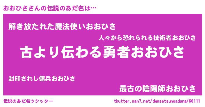 | ヒーロー風カッコイイあだ名 | 『サイバー戦士オオヒサ』『ネオオオヒサ』 |