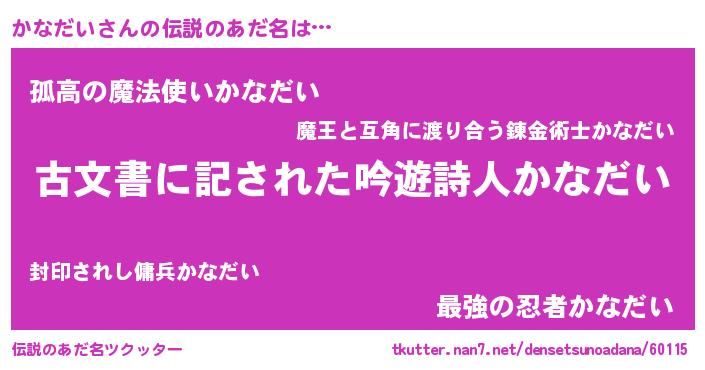 | 意味不明あだ名 | 『自称かなだい』『永久保存かなだい』 |