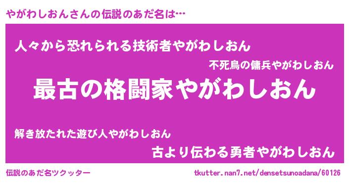 | 肩書あだ名 | 『やがわしおん総理大臣』 |