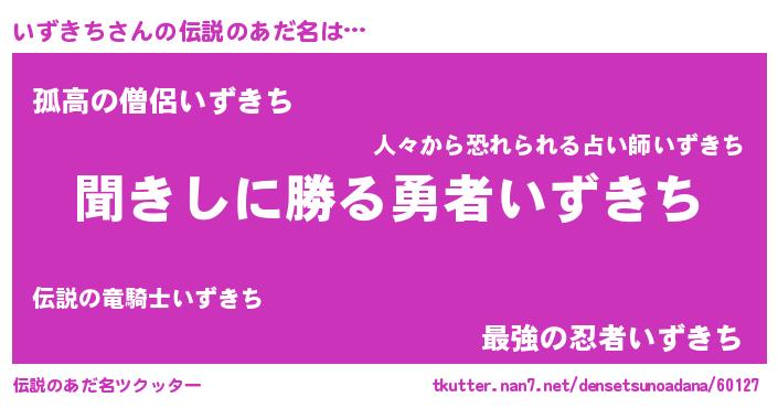 | 意味不明あだ名 | 『住所不定無職いずきち(98歳)』 |