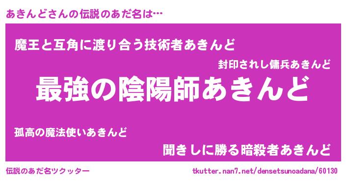 | 意味不明あだ名 | 『住所不定無職あきんど(77歳)』 |