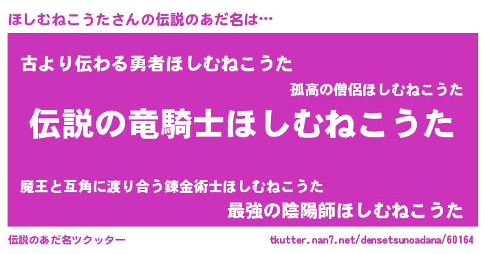 | 意味不明あだ名 | 『自称ほしむねこうた』 |