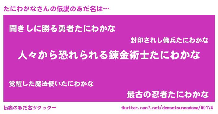 | ヒーロー風カッコイイあだ名 | 『正義の使者たにわかな』 |