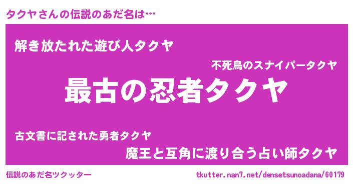 | 意味不明あだ名 | 『タクヤフォーエバー』『自称タクヤ』 |