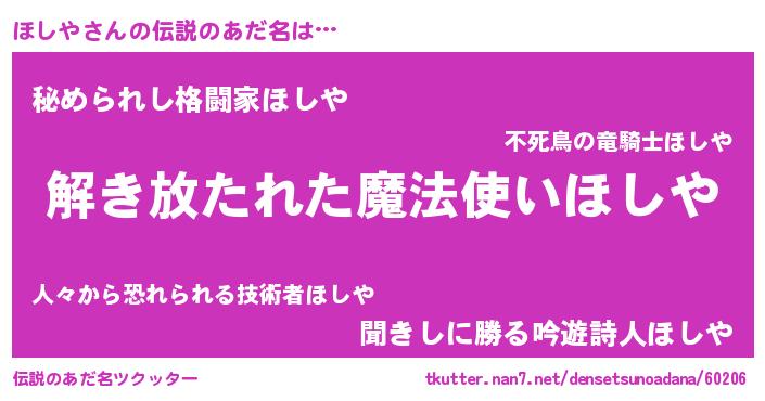 | 意味不明あだ名 | 『とにかく怪しいほしや』『自称ほしや』 |