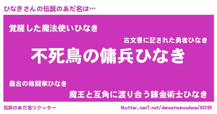 | ヒーロー風カッコイイあだ名 | 『最強戦士ヒナキ』『スーパーヒナキ』 |