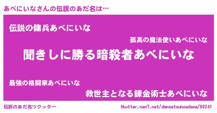 | 意味不明あだ名 | 『自称あべにいな』『永久保存あべにいな』 |