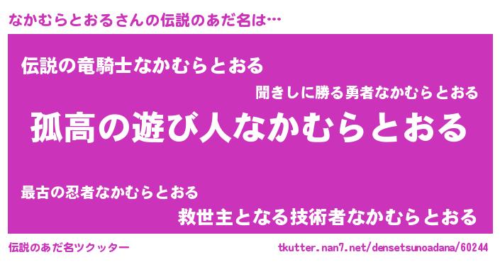 | 男性向けラノベタイトル風あだ名 | 『ダンジョンになかむらとおるを求めるのは間違っているだろうか』 |