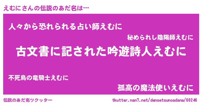 | ヘコむあだ名 | 『えむに(笑)』『えむ太郎』『つくし』 |