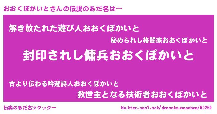 | 胡散臭い通販商品みたいなあだ名 | 『億万長者になれる水晶球…その名も「おおくぼかいと」』 |