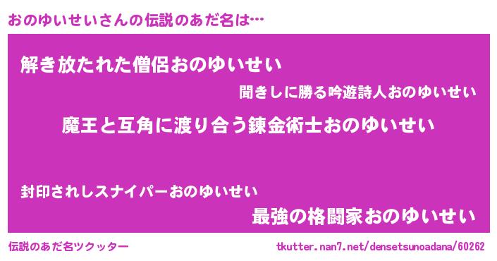 | ヒーロー風カッコイイあだ名 | 『慈愛の使者おのゆいせい』 |
