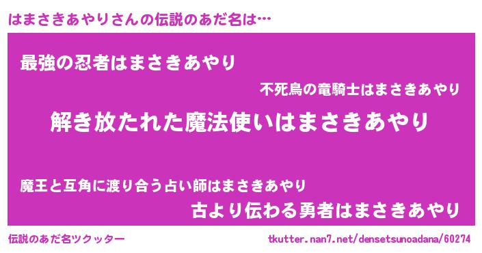 | 胡散臭い通販商品みたいなあだ名 | 『伝統あるサプリメント…その名も「はまさきあやり」』 |