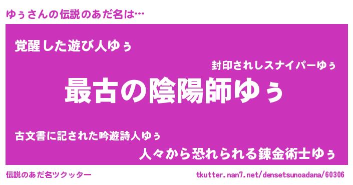 | ヒーロー風カッコイイあだ名 | 『サイバー戦士ユゥ』『ウルトラゆぅマン』 |