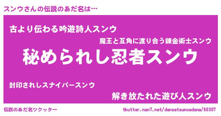 | 男性向けラノベタイトル風あだ名 | 『スンウスレイヤー』 |