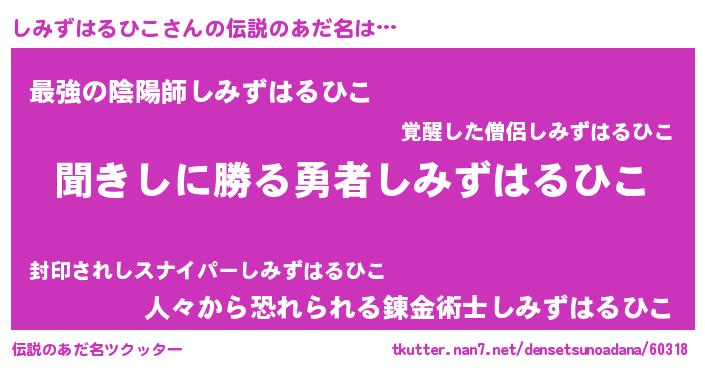 | 意味不明あだ名 | 『永久保存しみずはるひこ』 |