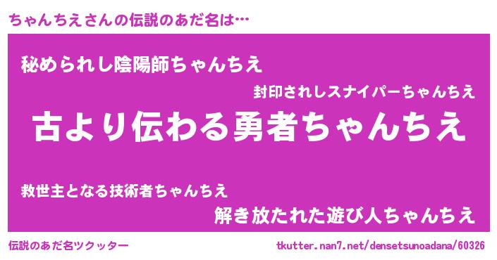 | 女子向けラノベタイトル風あだ名 | 『闇のちゃんちえ』『ちゃんちえの婚約者』 |