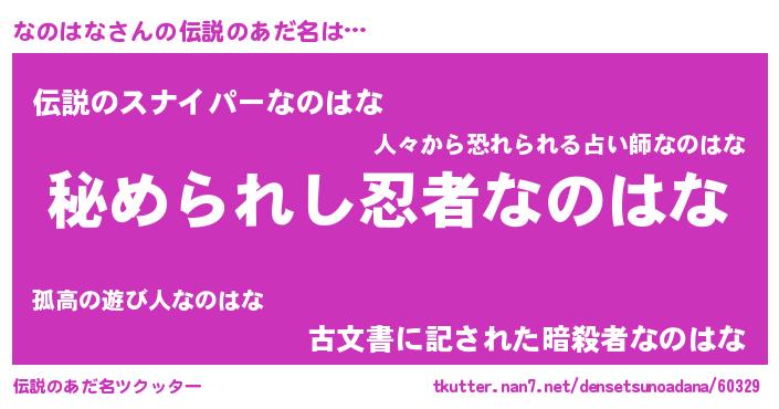 | 男性向けラノベタイトル風あだ名 | 『やはりなのはなの青春ラブコメはまちがっている 』 |